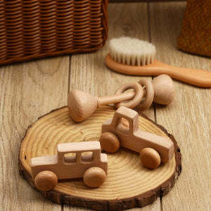 The Rusty Baby birth gift starts a journey full of discoveries and memories. The robust pickup truck made of sustainable wood invites you to go on your first driving adventures, while the hand-woven wooden rattle with its gentle sounds stimulates the senses and promotes fine motor skills.