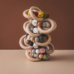 Celui-ci élégant Chaîne de dentition en silicone et bois est l'aide à la dentition idéale pour les bébés qui allie confort, naturel et design.