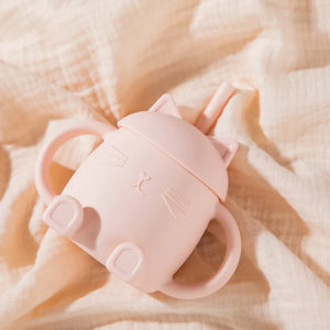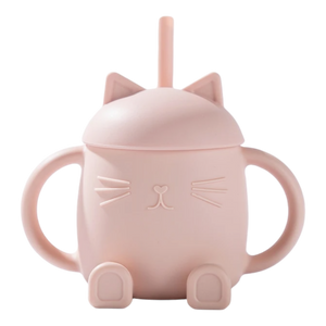 🐱 Bicchiere Cat Sitting Rosa - Bicchiere per bambini in silicone premium con design a gatto per neonati e bambini piccoli