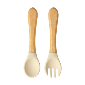 Buon appetito, piccolo buongustaio! 👶 Questo simpatico set di posate in morbido beige renderà i tuoi primi pasti un'esperienza speciale. Con manico in legno naturale e punta in silicone per alimenti: perfetto per i piccoli mangiatori che vogliono mangiare come gli adulti! 🌟