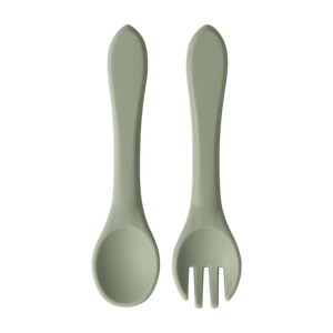 Frisch in grün! 💚 Mit diesem Besteckset bist du bestens ausgestattet für die ersten Mahlzeiten deines Babys. Die Gabel und der Löffel sind komplett aus hochwertigem, lebensmittelechtem Silikon gefertigt. Das Material ist BPA-frei, sicher und ungiftig! 🌱