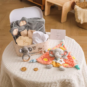 Das Ringo Baby Geschenk zur Geburt feiert kleine Helden von Anfang an. Der starke Rasselelefant wird zum ersten Abenteuerbegleiter, der die Hand-Augen-Koordination stärkt und beim Zahnen Trost spendet, während die besondere "It's a Boy" Tafel stolz die Ankunft des kleinen Prinzen verkündet.