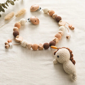 Blubb, blubb! 🐠 Diese zauberhafte Seepferdchen-Kinderwagenkette entführt Ihr Baby in eine märchenhafte Unterwasserwelt voller Magie und Wunder! Mit ihren anmutigen Seepferdchen, die sanft im Rhythmus der Fahrt tanzen, sorgt sie für verträumte Momente und regt die Fantasie kleiner Meerjungfrauen an. Pure Poesie! ✨
