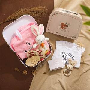Das Selma Baby Geschenk zur Geburt feiert kleine Prinzessinnen von Anfang an. Der verspielte Rasselhase wird zum ersten Abenteuerbegleiter, der die Hand-Augen-Koordination fördert und beim Zahnen sanfte Linderung bietet, während die besondere "It's a Girl" Tafel stolz die Ankunft der kleinen Prinzessin verkündet.