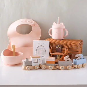Die besonderen Meilenstein-Karten halten jeden wichtigen Entwicklungsschritt fest wie Stationen auf einer großen Reise, der ergonomische Löffel mit Silikonspitze macht die ersten Essabenteuer sicher und das praktische Silikon-Lätzchen aus lebensmittelechtem Material schützt vor kleinen Pannen im Speisewagen. Alles elegant verpackt im hochwertigen Holzkoffer wie in einem nostalgischen Reisekoffer.