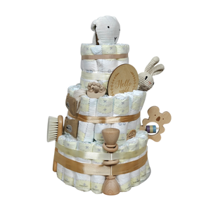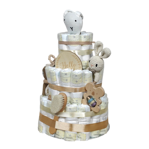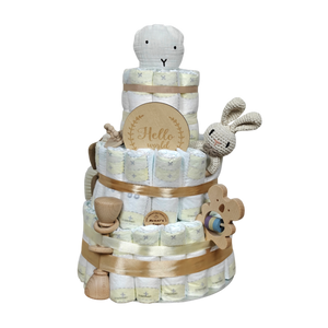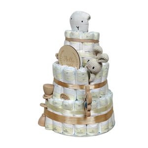 Die Windeltorte „Schnuffel Weiß“ ist ein liebevoll handgefertigtes Willkommensgeschenk voller Wärme, Stil und Natürlichkeit. In sanftem Weiß gehalten, vereint sie hochwertige Materialien und süße Babyaccessoires zu einem harmonischen Gesamtbild – perfekt zur Geburt, Babyparty oder Taufe.